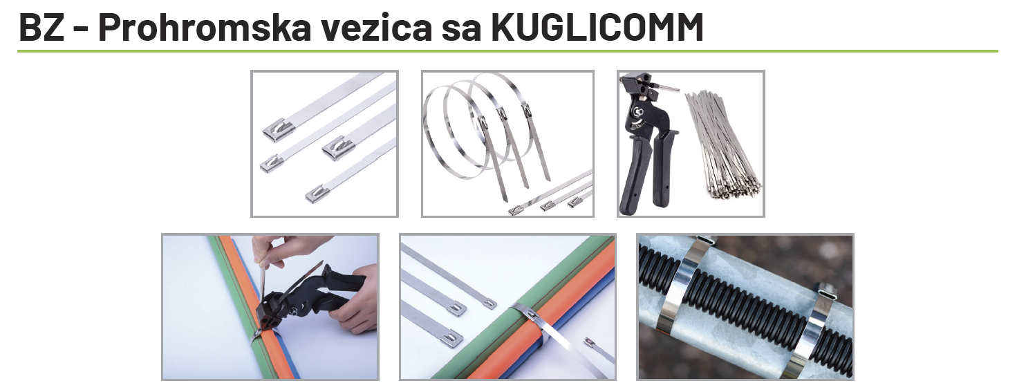 Vezica je napravljena od lima debljine 0,25mm. Kvalitet čelika je AISI 304. U kućištu ima kuglicu koja zaključava vezicu. Može se zategnuti rukom, špicanglama ili specijalnim kleštima u zavisnosti od potrebne jačine zaključavanja vezice.