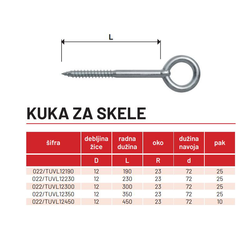 Kuka za skele 12x190/23