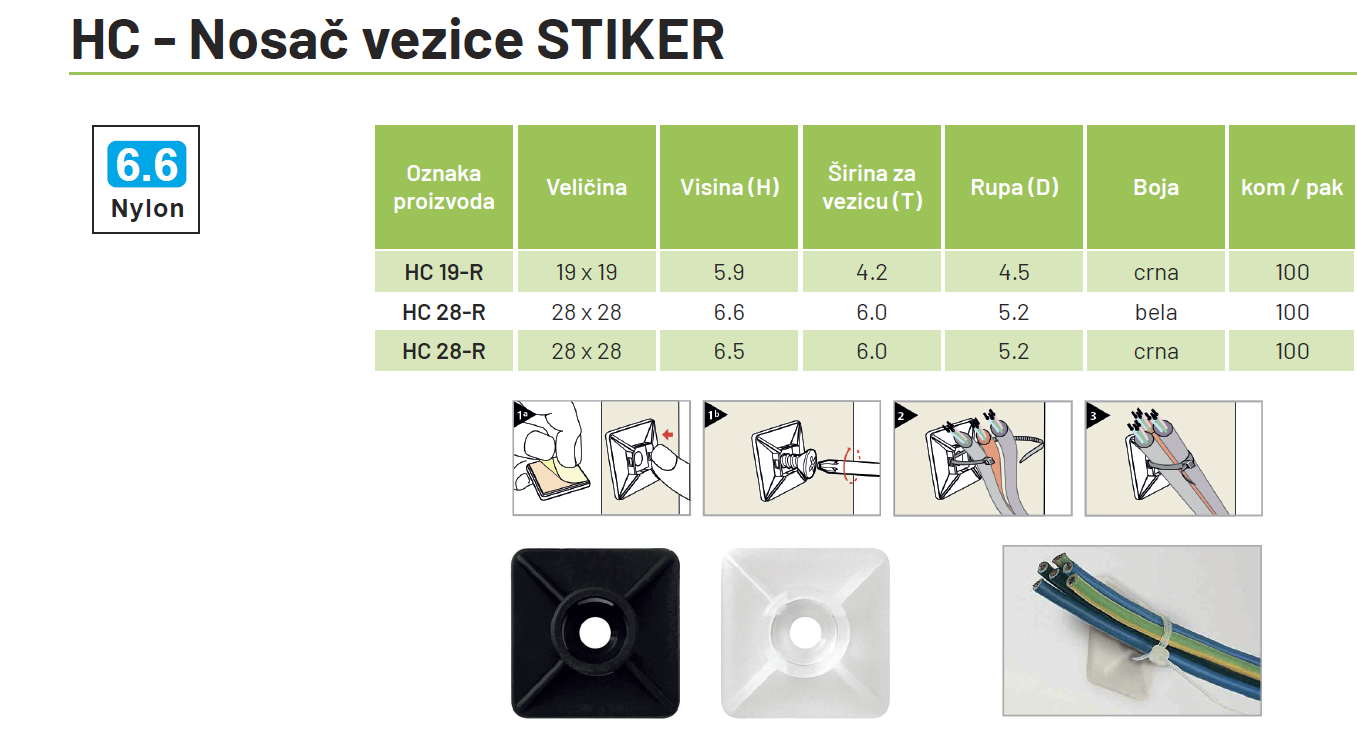 Samolepljivi nosač vezice. Može se zalepiti ili zašrafiti.