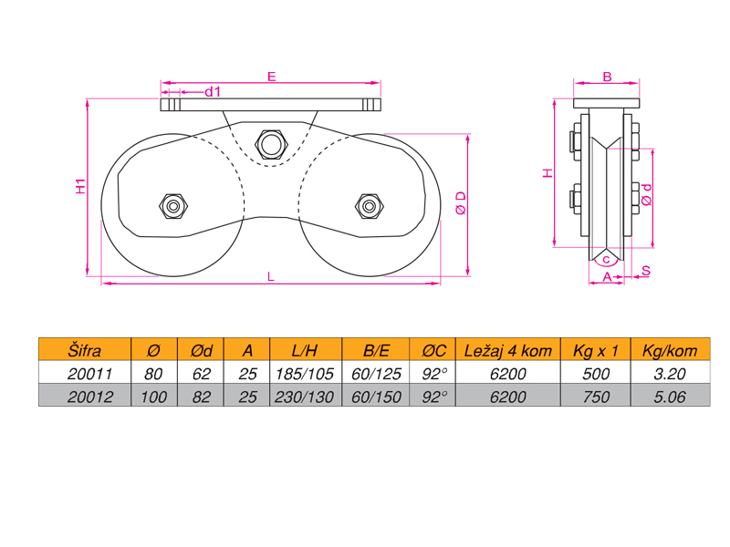 Točak za kliznu kapiju dupli V