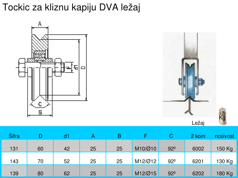 Točkić za kliznu KAPIJU DVA ležaj