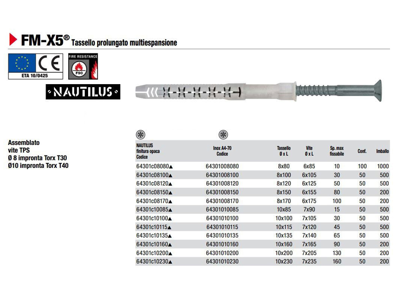 Dugački nylon tipl sa konusnom glavom. Zavrće se sa torex T-30,T-40 nastavcima u zavisnosti od veličine šrafa. Pouzdan je za opterećena u bloku i cigli. Naravno može se koristiti i u betonu, kamenu.Iako je slučan ukucavajućim tiplovima ovaj šraf sa tiplom se zavrće i takođe može i da se odvrne, odnosno demontira.Ovaj tipl ima ETA sertifikat
